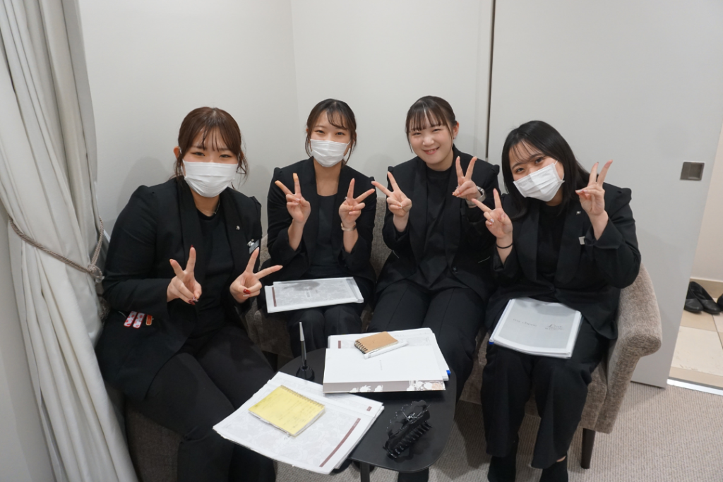 みやび株式会社では、新人ドレスコーディネーターが毎月の研修を通して、衣裳知識・接客力・提案力をバランスよく身につけられる環境を整えています。